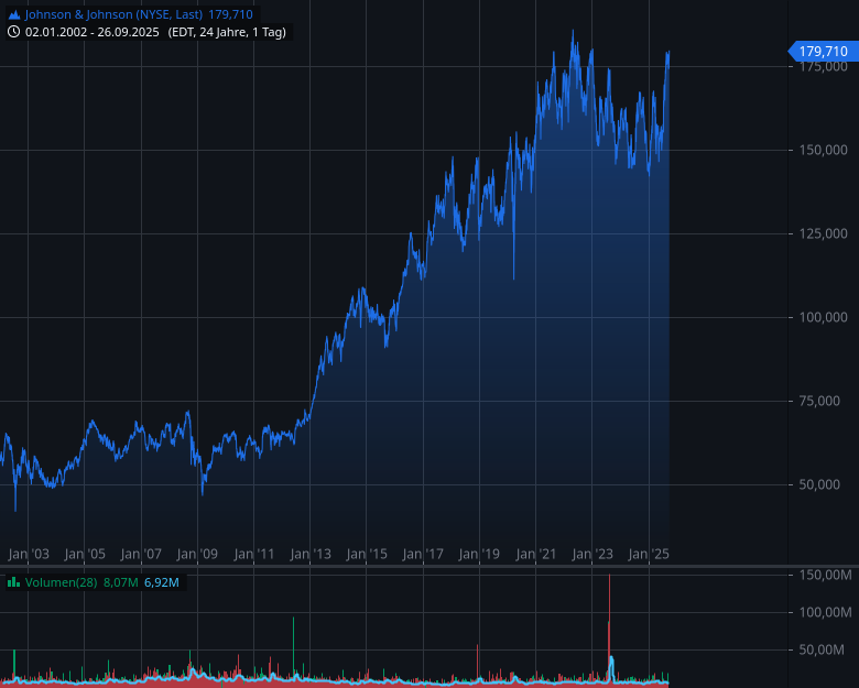 - Johnson & JohnsonKursstand: 204,341 $ (NYSE) - Zum Zeitpunkt der VeröffentlichungVerkaufenKaufen