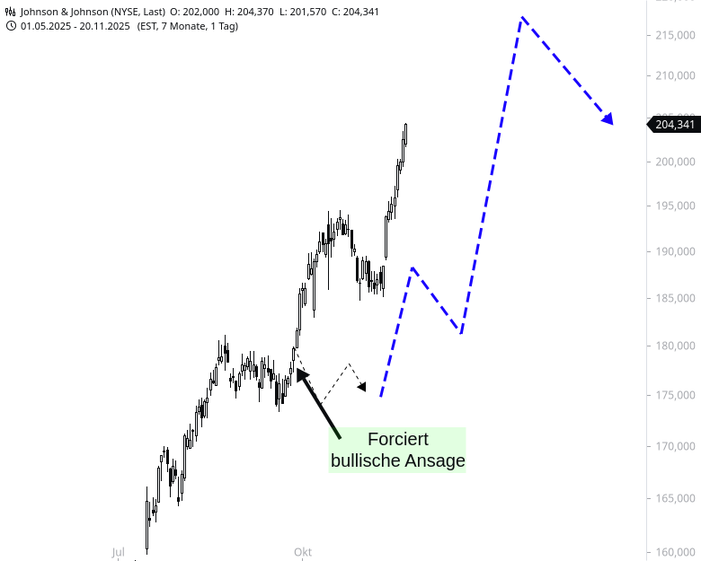 Johnson & Johnson - Mittelfristige Prognoseskizze als Grafiksnapshot - Chartanalyse & Trading - 1 Kerze = 1 Tag