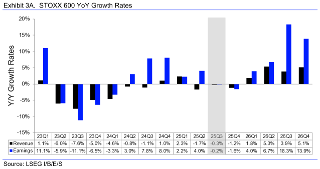 In Europa sieht es weniger erfreulich aus. Für den STOXX 600 rechnen die Analysten de facto mit einer Stagnation, die sich im vierten Quartal zu einem echten Minus auswachsen soll. Auch hier ist erst ab dem kommenden Jahr wieder Besserung in Sicht: