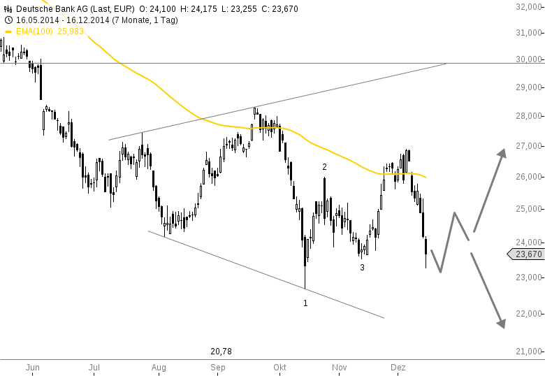 "Kurzfristig fungiert der Punkt 3 des angesprochenen Musters als Unterstützung und könnte eine kleine Erholungswelle in Richtung 25-26 Euro lostreten."