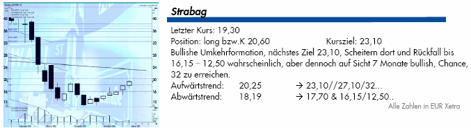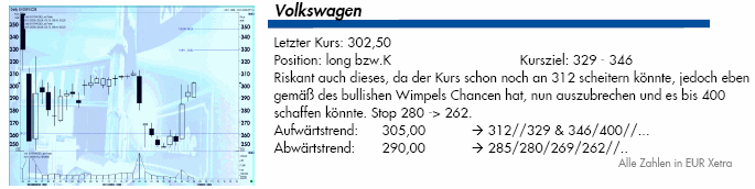 Beachten Sie, dass die charttechnischen Prognosen kurz und prägnant jeweils direkt neben den Chartgrafiken stehen.