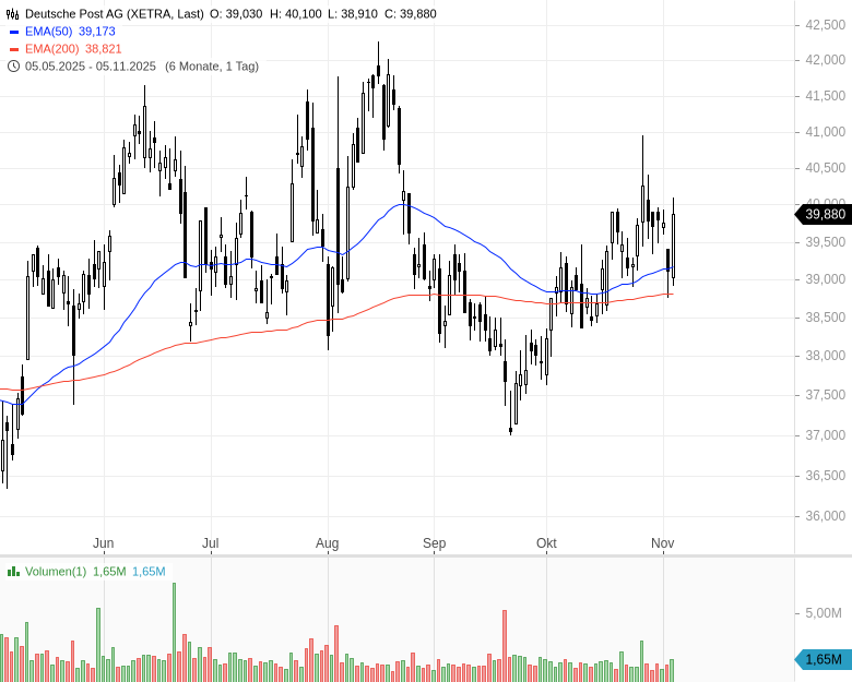 - Deutsche Post AGKursstand: 39,880 € (XETRA) - Zum Zeitpunkt der VeröffentlichungVerkaufenKaufen