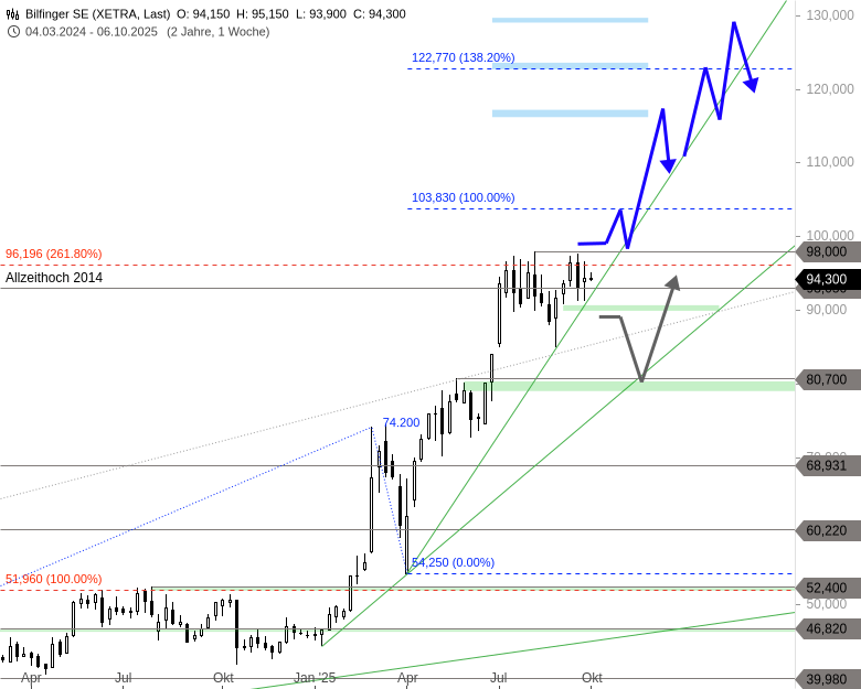 Oberhalb der Marke könnte der Titel weiter bis knapp 104 EUR steigen. Darüber sind nach einer entsprechenden Korrekturphase mittelfristig weitere Zugewinne bis 117 und 129 EUR möglich.