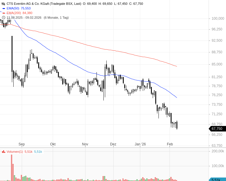 - CTS Eventim AG & Co. KGaAKursstand: 68,200 € (XETRA) - Zum Zeitpunkt der VeröffentlichungVerkaufenKaufen