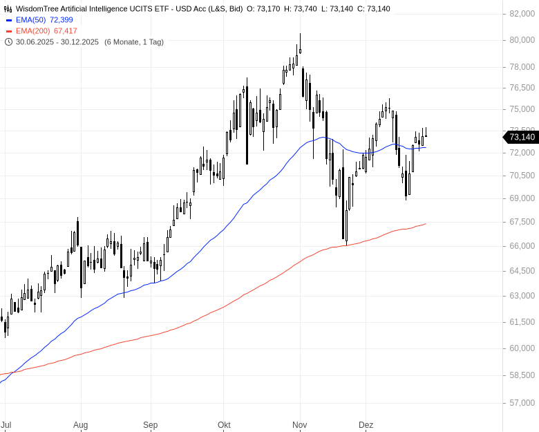 - WisdomTree Artificial Intelligence UCITS ETF - USD AccKursstand: 73,140 € (L&S) - Zum Zeitpunkt der VeröffentlichungVerkaufenKaufen