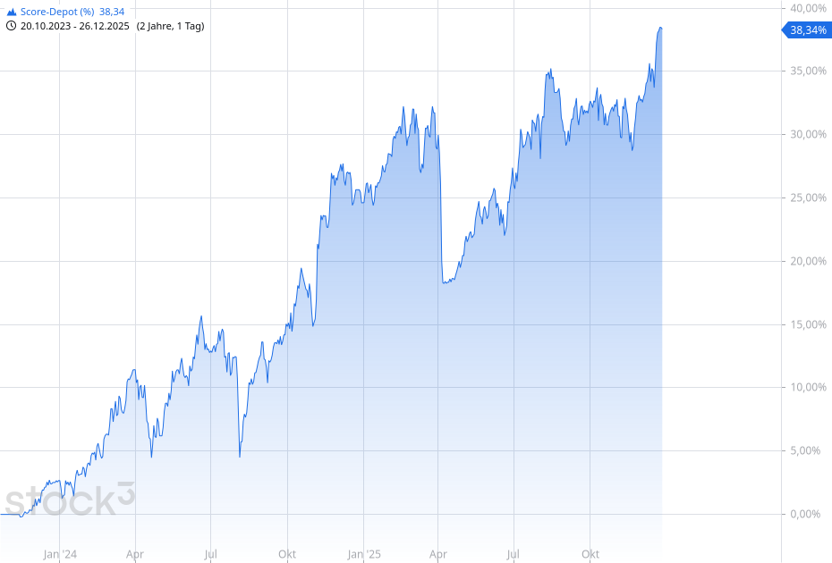 Im Score-Depot und auch privat bin ich seit Mai 2025 bei Fresnillo investiert. Das Kursplus seit dem Einstieg beläuft sich inzwischen auf mehr als 200 %. Damit ist die Aktie aktuell die am besten gelaufene Position im Score-Depot.