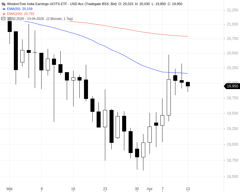 - WisdomTree India Earnings UCITS ETF - USD Acc - WKN: A41J2V - ISIN: IE000VCYXLY9 - Kurs: 19,880 € (L&S)