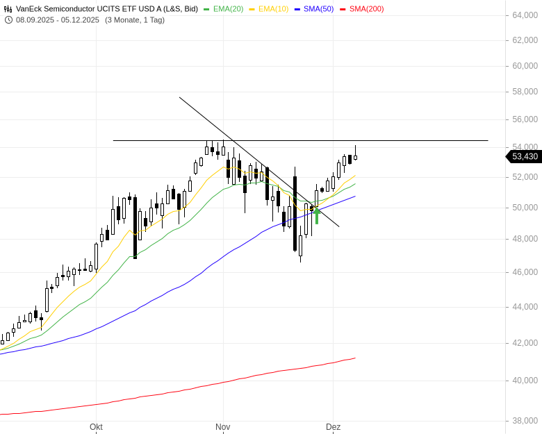 - VanEck Semiconductor UCITS ETF USD AKursstand: 54,250 € (L&S) - Zum Zeitpunkt der VeröffentlichungVerkaufenKaufen