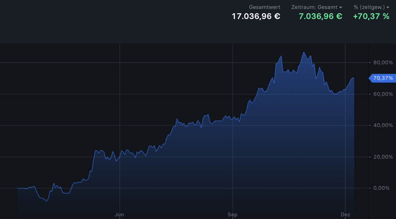 Es zeigt sich wieder mal erneut: Es lohnt sich den Prozess einzuhalten. Voller Fokus auf handelbare Setups mit kalkulierbarem Risiko. So sollte es möglich sein sich von Rückschlägen wie dem der letzten Wochen zu erholen. Das Ten Thousand Trader-Depot konnte in der letzten Woche wieder um 10 % zulegen. Das macht nicht nur prozentual Freude, sondern vor allem auch Mental. Alle Positionen, die ich halte handeln im Gewinn und alle Positionen waren recht schnell im Plus. So etwas ist natürlich nur mit dem Rückenwind des Marktes möglich.