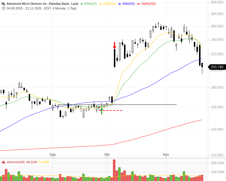- Advanced Micro Devices Inc.Kursstand: 199,710 $ (Nasdaq) - Zum Zeitpunkt der VeröffentlichungVerkaufenKaufen