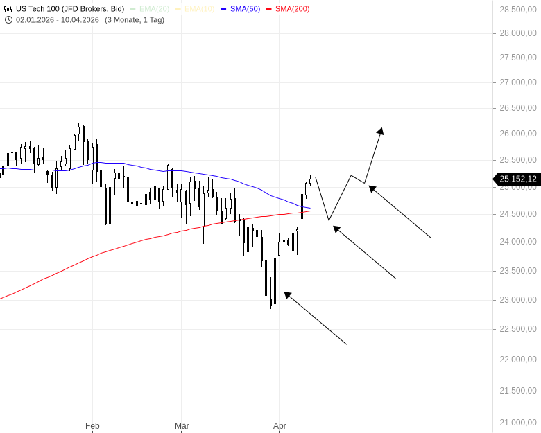 Jede größere Korrektur folgt einem ähnlichen Muster, auch diese. Schaut man sich die Korrektur vom April 2025 an, sieht man, dass es drei potenzielle Einstiege gibt, auf die ich mich immer fokussiere. Von unten nach oben: