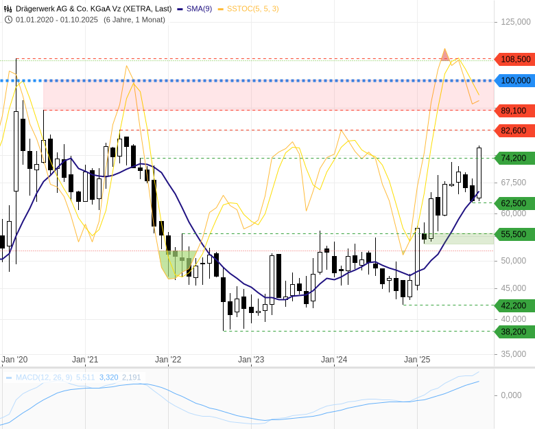 Mein Fazit: Drägerwerk ist zurück im Rampenlicht. Fundamentale Impulse, technische Stärke und ein intakter Aufwärtstrend sprechen für weiter steigende Kurse. Trader sollten die 200-Tage-Linie bei 64 EUR als zentrale Absicherung im Blick behalten; solange diese hält, bleibt der Rally-Zug in Fahrt.