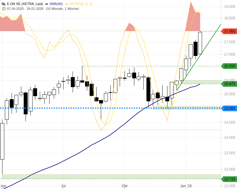 Charttechnisch präsentiert sich das Papier seit dem vergangenen Herbst in einem intakten Aufwärtstrend. Die Zone um 15 EUR hat sich dabei als tragfähiger Support etabliert. Aktuell signalisiert der Markt zwar eine überkaufte Situation, was kurzfristige Gewinnmitnahmen begünstigen kann. Dennoch bleibt das Gesamtbild konstruktiv.