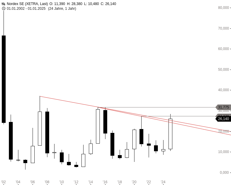 Die breite Bodenbildung der Jahre 2023 und 2024 hat hier den Grundstein für einen Ausbruch über die langfristige Abwärtstrendlinie gelegt, der Ende Oktober erfolgte. Zuletzt wurde auch ein markantes Zwischenhoch aus dem Jahr 2021 kurzzeitig überschritten, ehe die aktuell laufende Korrekturbewegung begann. Bedingungen für das nächste Longsignal lassen sich aber jetzt schon definieren.