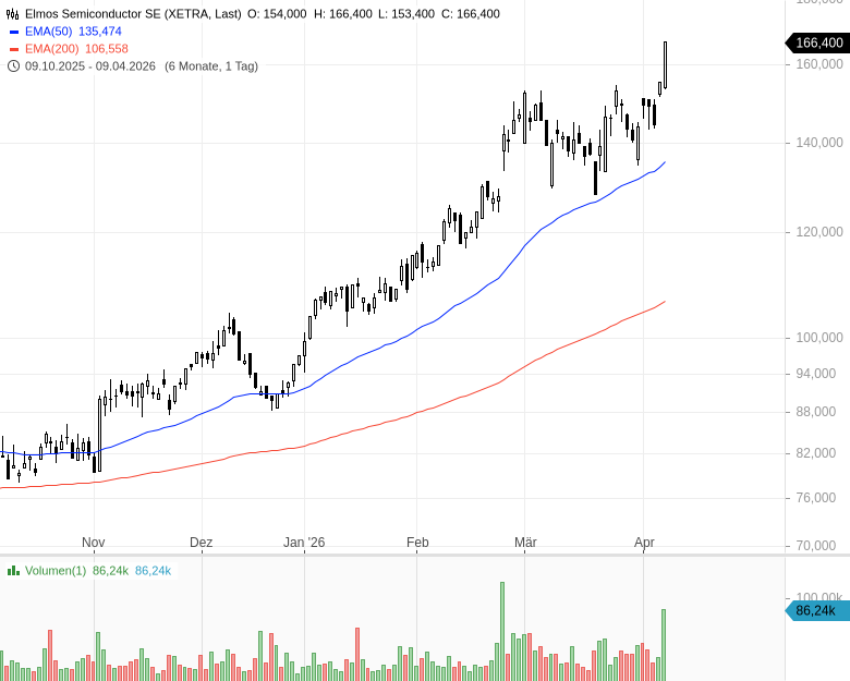 Zuletzt hatte die Elmos-Aktie Rückenwind durch die angekündigte Einziehung von 540.000 eigenen Aktien, was 3,05 % des Grundkapitals entspricht. Damit soll der Spielraum für künftige Aktienrückkäufe steigen.