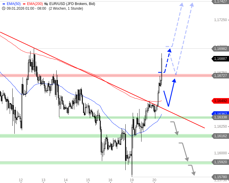 Intraday Unterstützungen: 1,1649 + 1,1640 + 1,1616 + 1,1592