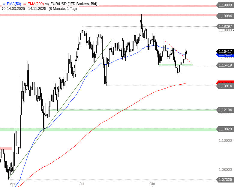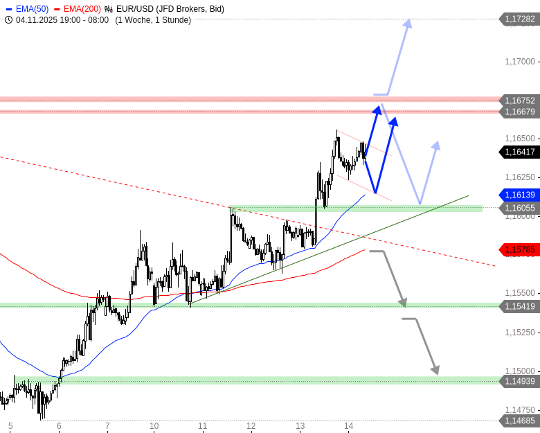 Intraday Unterstützungen: 1,1615 + 1,1605 + 1,1587 + 1,1542
