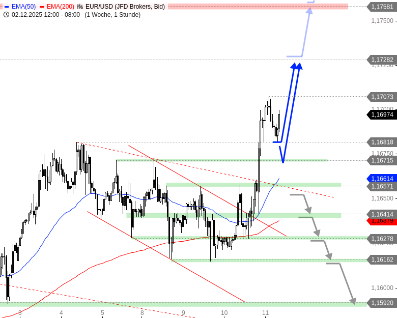 Intraday Unterstützungen: 1,1682 + 1,1672 + 1,1657 + 1,1641