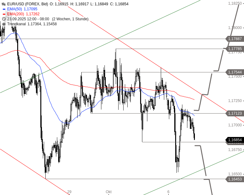 Unterstützungen: 1,1683 + 1,1645 + 1,1590