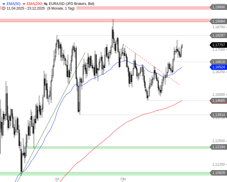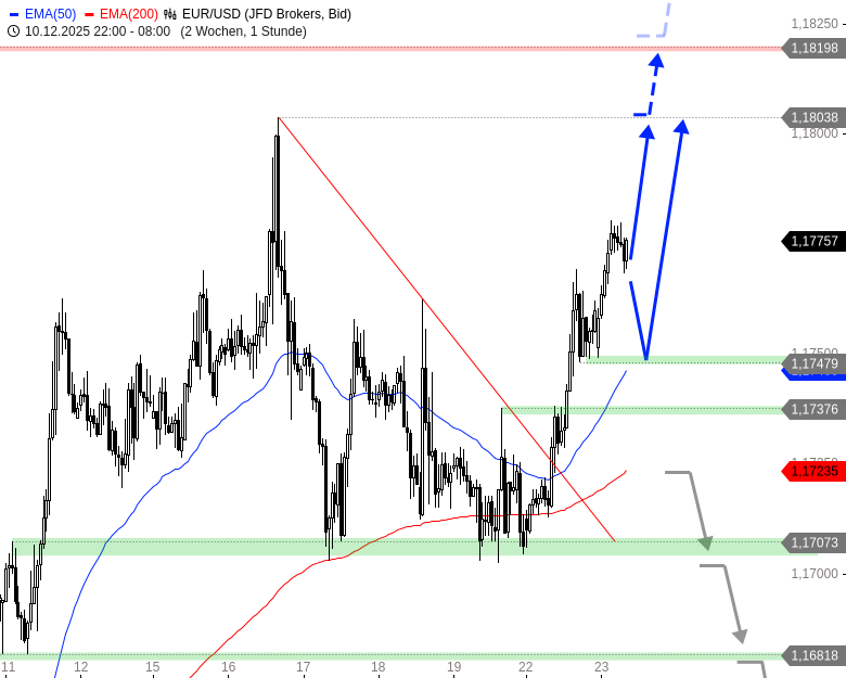 Intraday Unterstützungen: 1,1749 + 1,1738 + 1,1707 + 1,1682