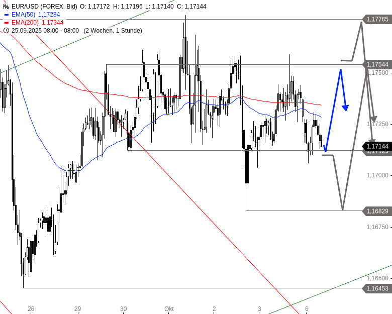 Unterstützungen: 1,1712 + 1,1683 + 1,1645