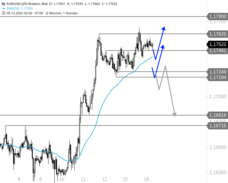 Unterstützungen (Intraday): 1,17461 + 1,17249 + 1,17194
