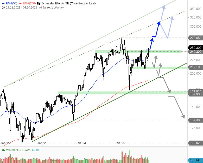 - Schneider Electric SEKursstand: 249,700 € (XETRA) - Zum Zeitpunkt der VeröffentlichungVerkaufenKaufen