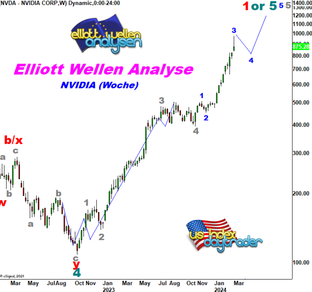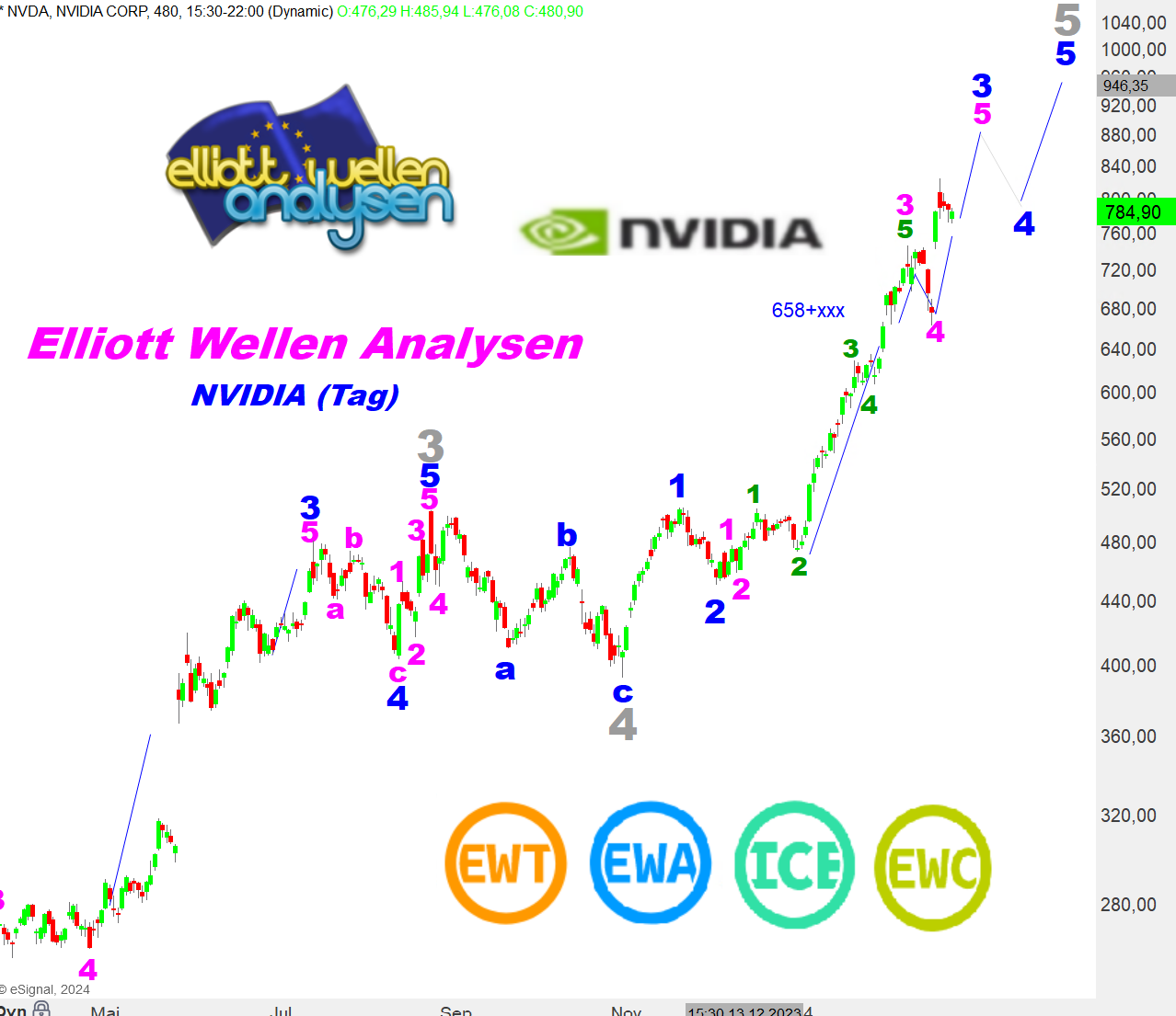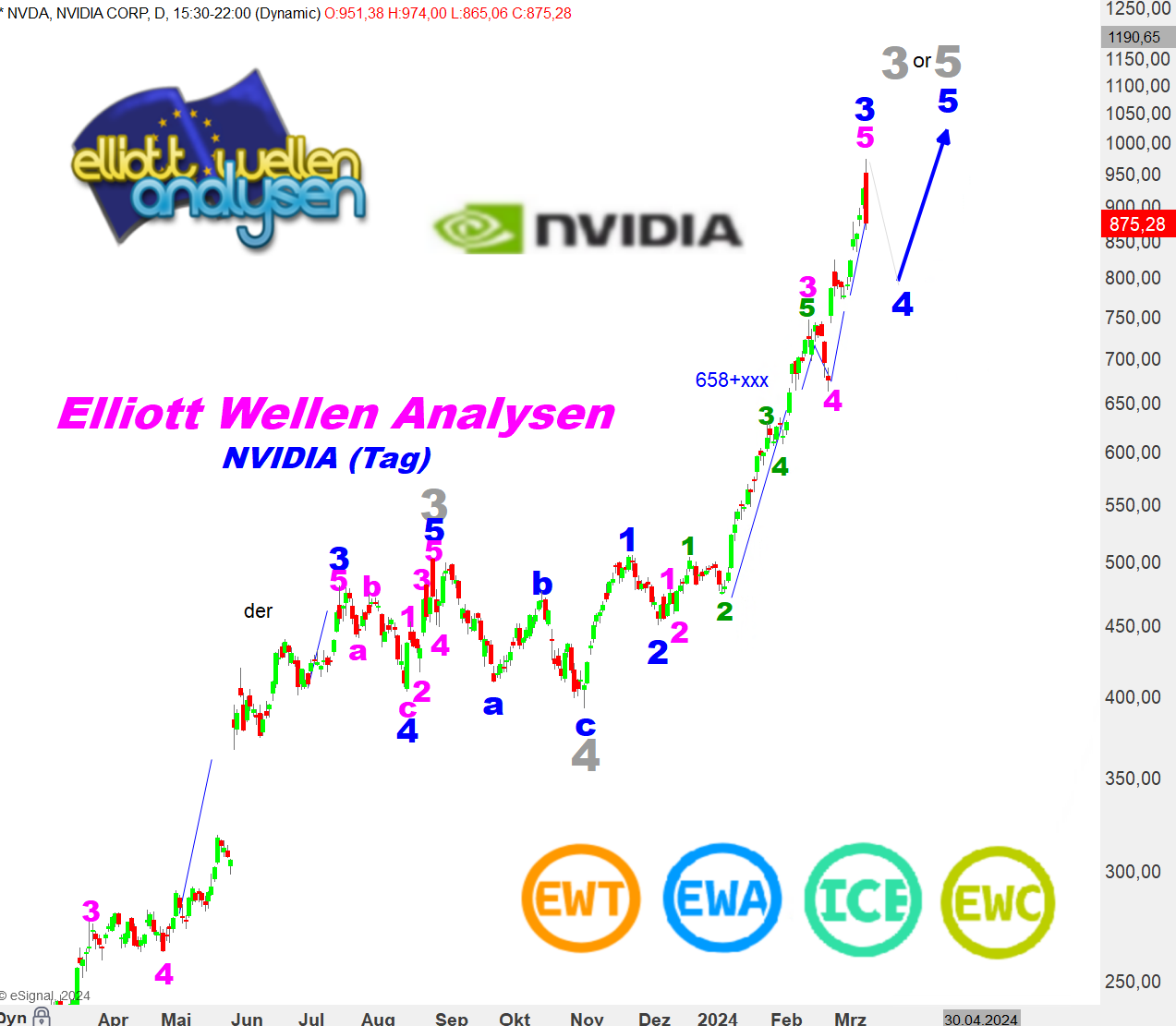 Die letzte Elliott Wellen Analyse lautete "EW Analyse - NVIDIA - Es läuft genial". Ich erlaubte mir dann noch von obergenial zu sprechen. :-)