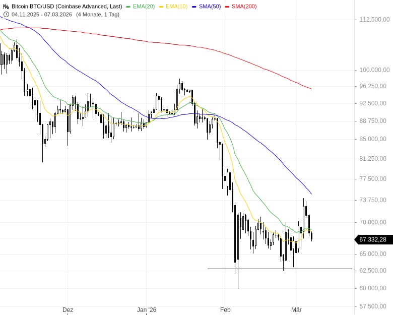 Die Straße von Hormus ist das weltweit wichtigste Nadelöhr für den Ölexport. Rund ein Fünftel der weltweiten Öltransporte passieren diese Meerenge. Der Iran hat im Zuge des Krieges die Straße von Hormus geschlossen, was weltweit die Öl- und Benzinpreise rapide steigen lässt. Die Wirtschaft reagiert sensibel und die Märkte eröffnen mit einem tiefen Down-Gap. Wann sich die Lage entschärft, ist nicht abzusehen. Die Bewegungen in der anlaufenden Woche sind stark nachrichtenabhängig. Der US-Handel startet ab dieser Woche um 14:30 Uhr wegen der verschobenen Sommerzeit. Die kurzfristige Prognose auf Basis der Index-Charts: mit Gegenbewegungen fallend.