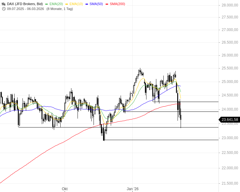 Der DAX fällt am Morgen unter 23.000 Punkte. Auch hier ist eine Gegenbewegung denkbar.
