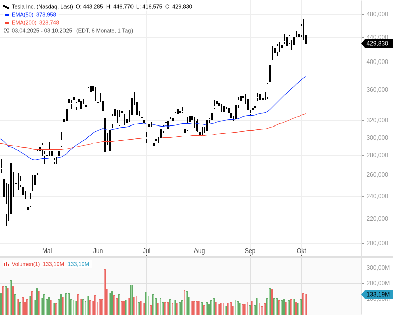 Insgesamt verlief das bisherige Jahr schwierig für Tesla, obwohl im dritten Quartal wieder ein Auslieferungsrekord aufgestellt werden konnte. Die Auslieferungen erhöhten sich um 7,4 % gegenüber dem Vorjahresquartal auf 497.099 Fahrzeuge. Dabei profitierte Tesla auch von einer auslaufenden Steuergutschrift in Höhe von 7.500 USD für gekaufte Elektrofahrzeuge.