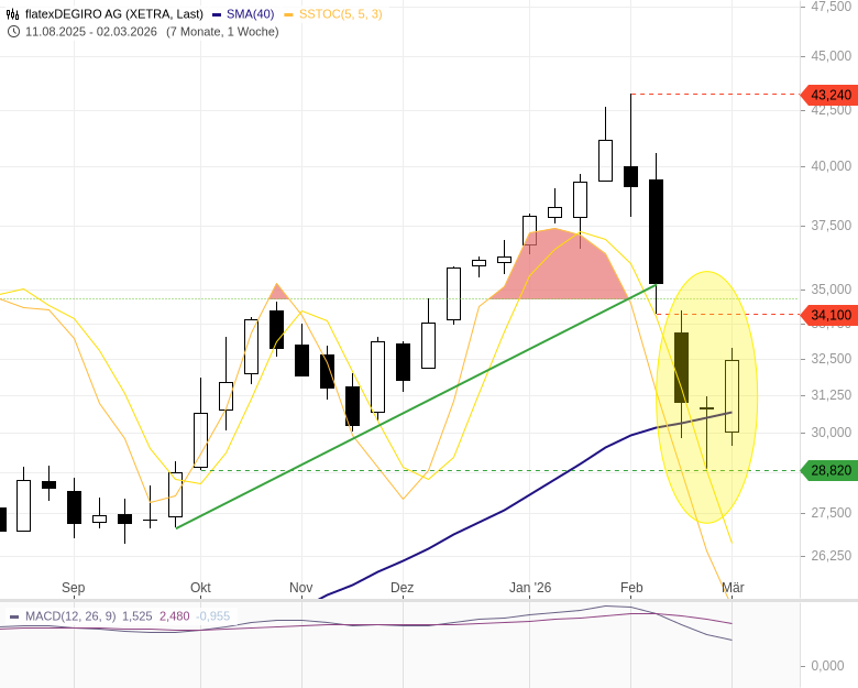 Mein Fazit: Die Aktie der FlatexDEGIRO AG ist kein klassischer Value-Case, sondern eine Momentum- und Rebound-Story mit klar definierten Marken. Solange die 200-Tage-Linie hält, bleibt die Long-Seite technisch favorisiert. Bricht der Bereich um 30,68 EUR signifikant, trübt sich das Bild ein. Für risikobewusste Trader bietet sich hier ein Setup mit enger Absicherung und attraktivem Chance-Risiko-Verhältnis.