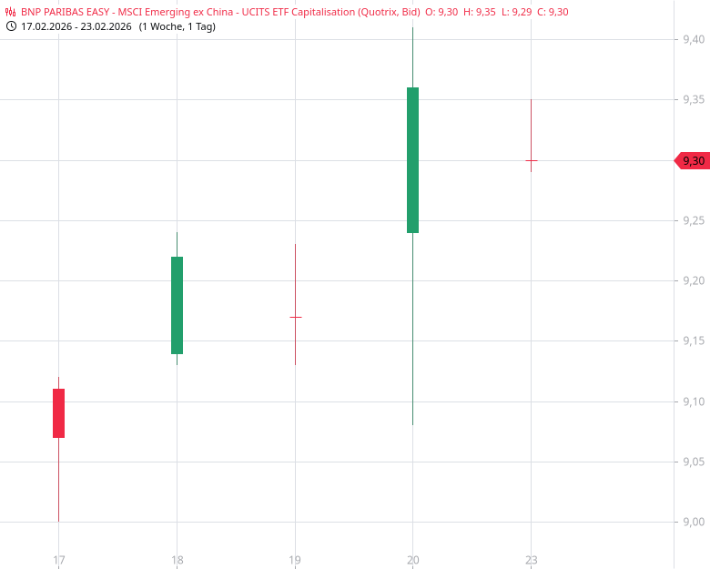 - BNP PARIBAS EASY - MSCI Emerging ex China - UCITS ETF CapitalisationKursstand: 9,34 € (Quotrix) - Zum Zeitpunkt der VeröffentlichungVerkaufenKaufen