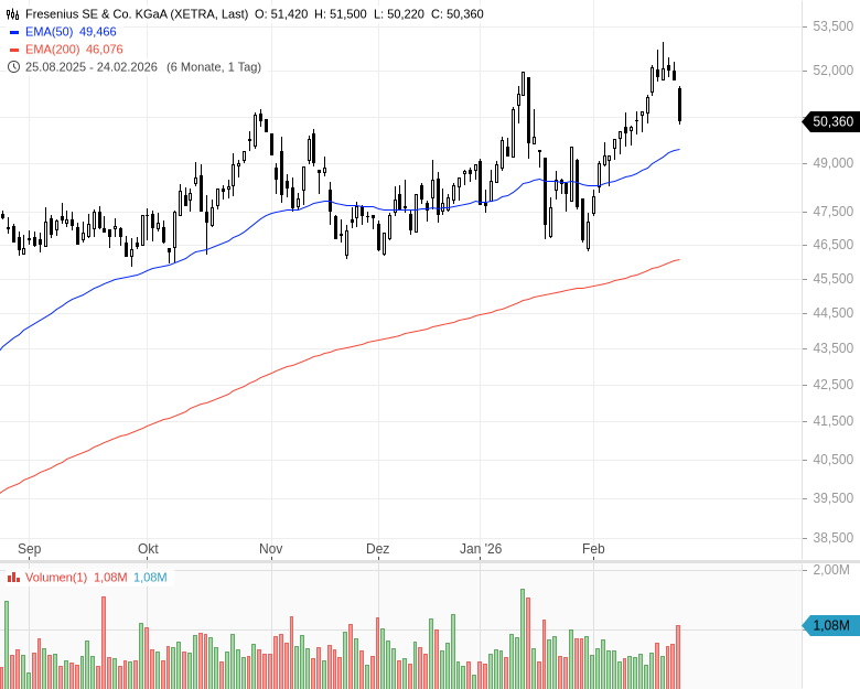 Fazit: Fresenius liefert für 2025 solide Zahlen mit klarer operativer Verbesserung, starkem Cashflow und weiter sinkender Verschuldung. Die Anhebung der Margenziele bei Kabi signalisiert wachsendes Vertrauen in die eigene Effizienz. Beim Ausblick liegt man in etwa auf Konsens. Die Aussagen vom Unternehmen passen weiterhin stimmig ins große Bild. Eine positive Überraschung ist das aber eben auch nicht mehr.