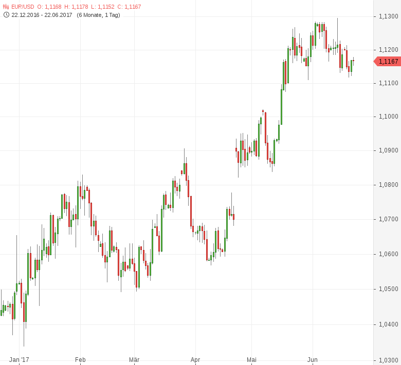 EUR/USD notierte bislang bei 1,1152 im Tief, während GBP/USD nach der gestrigen Verschnaufpause ebenfalls wieder nachgibt und zutiefst bislang bei 1,2652 gehandelt wurde. Der monatlich von der „Confederation of British Industry“ erhobene CBI-Report „Industrial Trends“ ist besser ausgefallen als erwartet. Der Index, die Auftragseingänge von Unternehmen im verarbeitenden Gewerbe Großbritanniens misst, ist im Juni überraschend auf plus 16 Punkte gestiegen. Analysten hatten im Konsens hingegen mit einem Rückgang auf plus sieben Zähler gerechnet, nach plus neun Punkten im Vormonat Mai. Bitte beachten Sie auch die heutige GBP/USD-News.