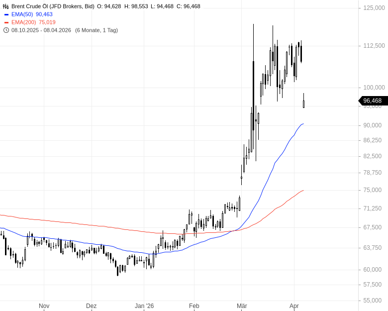 - Brent Crude Öl - WKN: 967740 - ISIN: XC0009677409 - Kurs: 96,468 $/bbl. (JFD Brokers)