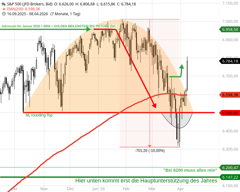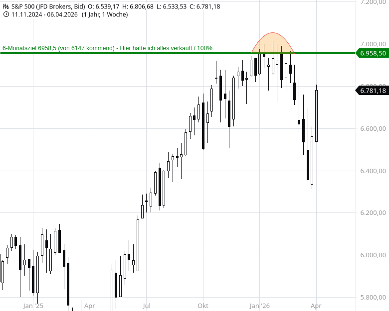 3) Und dann passiert, was kommen musste, der breite US Markt explodiert in der Vorbörse vom 8. April um ca. +8,0% vom Jahrestief 6.310 bis 6.800.