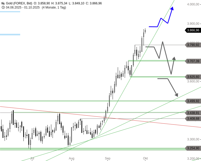 Goldpreis Unterstützungen: 3.790 + 3.745 + 3.707
