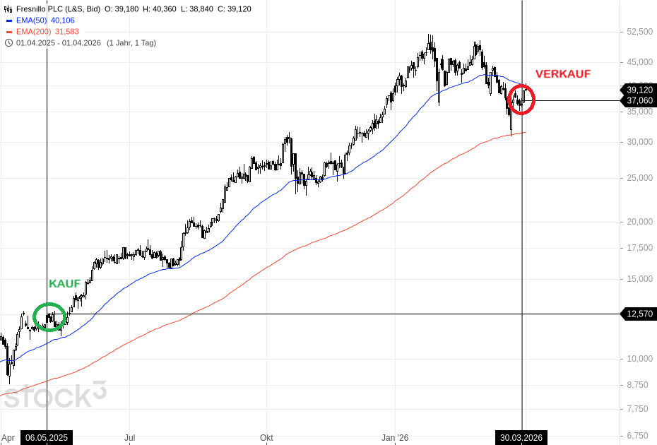 Als weltgrößter Silberproduzent und zweitgrößter Goldproduzent in Mexiko profitierte Fresnillo im vergangenen Jahr wie kaum ein anderes Unternehmen von den stark steigenden Edelmetallpreisen. Die Fresnillo-Aktie wurde am 06.05.2025 ins Score-Depot aufgenommen und am 30.03.2026 wieder verkauft. Mit einem Gewinn von 194,83 % war die Position der bisher erfolgreichste Trade im Depot.