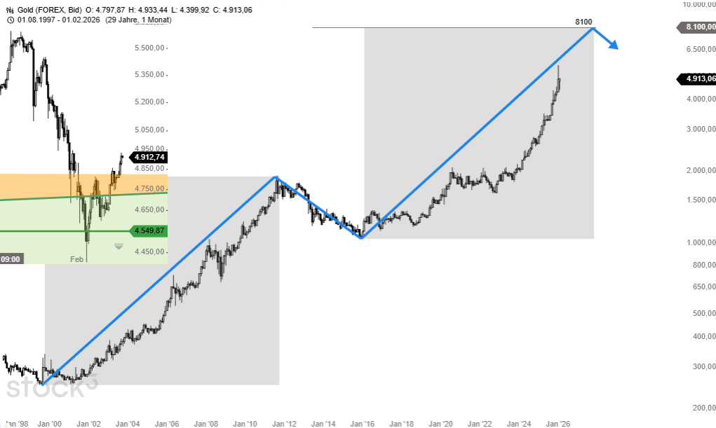 GOLD Ziel: 8100 USD bis 1.5.2028