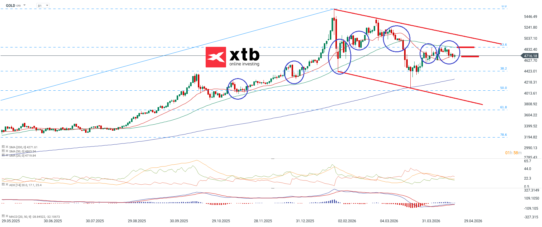 - Widerstandszone: Erst ein Tagesschlusskurs über der SMA50 (4.774,8 USD) und dem 23,6 % Retracement würde das Chartbild wieder deutlich aufhellen.