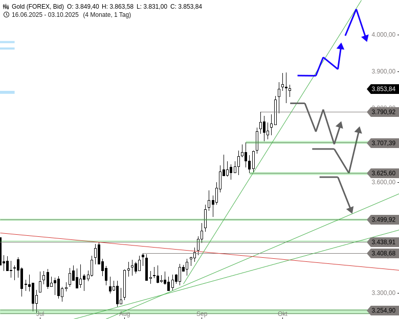 Goldpreis Unterstützungen: 3.790 + 3.745 + 3.707