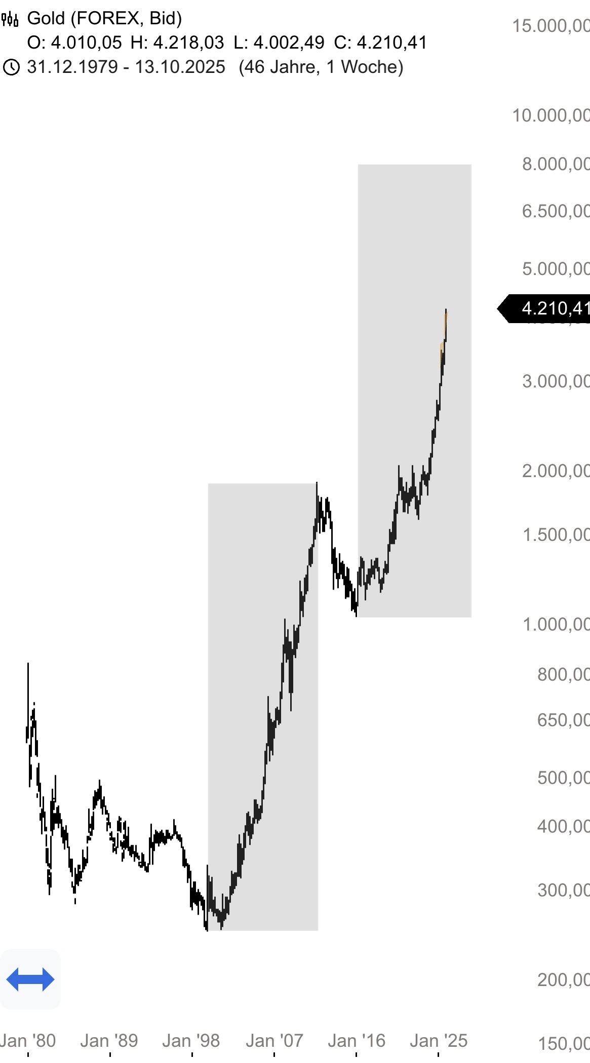 Heute habe ich den Gold Chart aus Neugier bis 1980 aufgezogen, um zu sehen zu was Gold imstande ist.