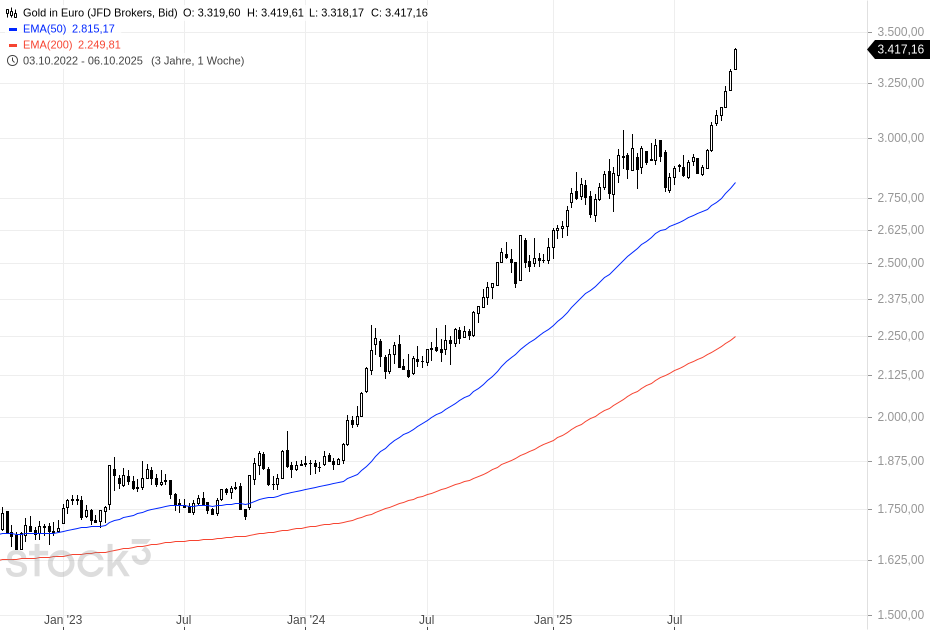 Der Goldpreisanstieg der letzten Monate beruht vor allem auf dem gestiegenen Sicherheitsbedürfnis der Anleger und der Angst vor einer weiteren Geldentwertung bei Fiat-Währungen wie Dollar und Euro. Geopolitische Spannungen, die Handelskonflikte, der Regierungsstillstand in den USA und die zunehmenden Stagflationssorgen treffen auf die Erwartung sinkender Zinsen, was die Opportunitätskosten von Gold senkt und die Nachfrage anheizt.