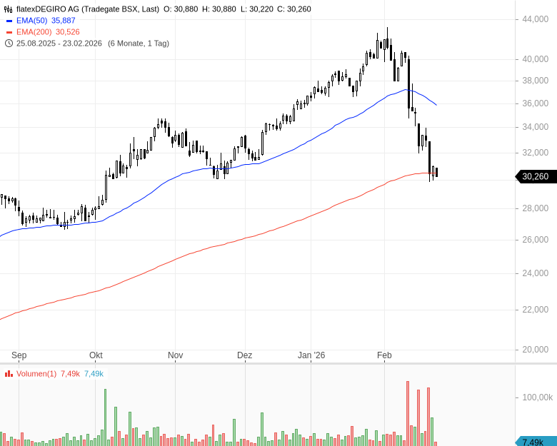 - flatexDEGIRO AG - WKN: FTG111 - ISIN: DE000FTG1111 - Kurs: 30,260 € (XETRA)