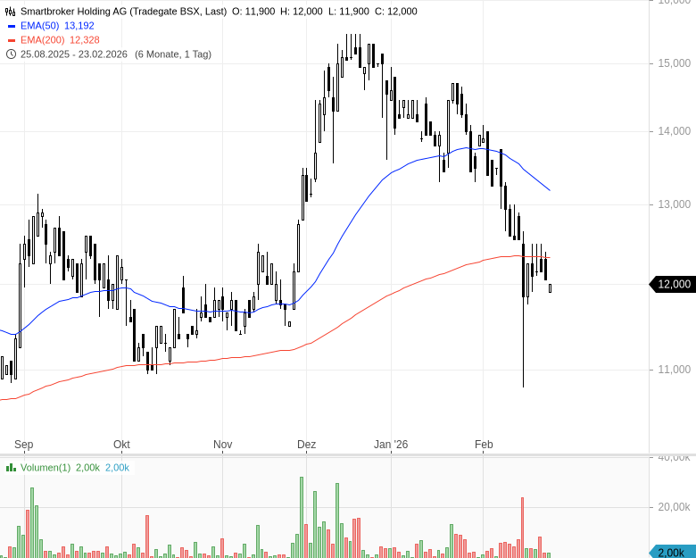 - Smartbroker Holding AGKursstand: 12,050 € (XETRA) - Zum Zeitpunkt der VeröffentlichungVerkaufenKaufen