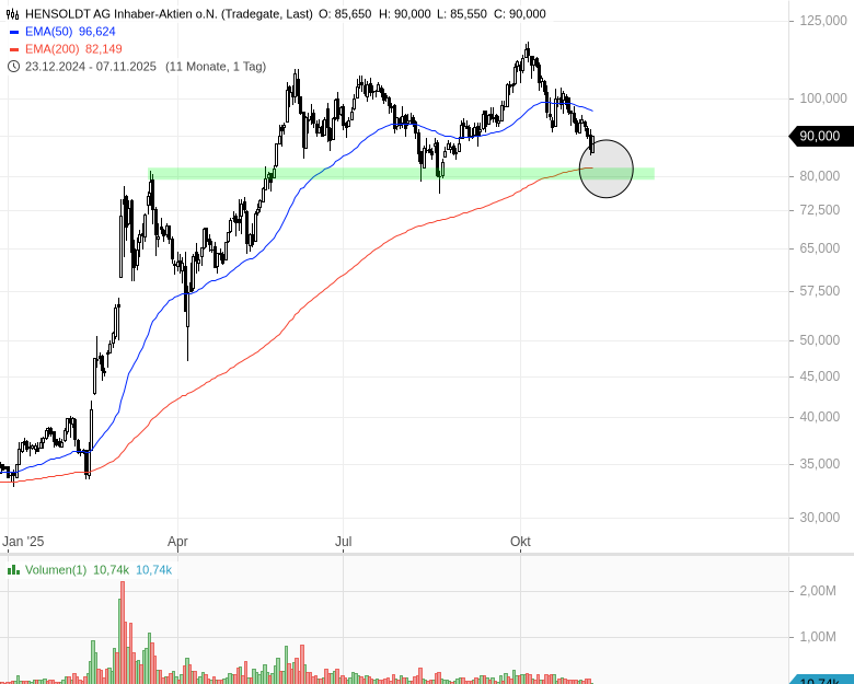 Sollte heute die Enttäuschung bzgl. des Umsatzes an der Börse dominieren, dürfte die Aktie auf der Unterstützung am EMA200 aufsetzen. Dort erscheint der Start einer Gegenbewegung zumindest plausibel.