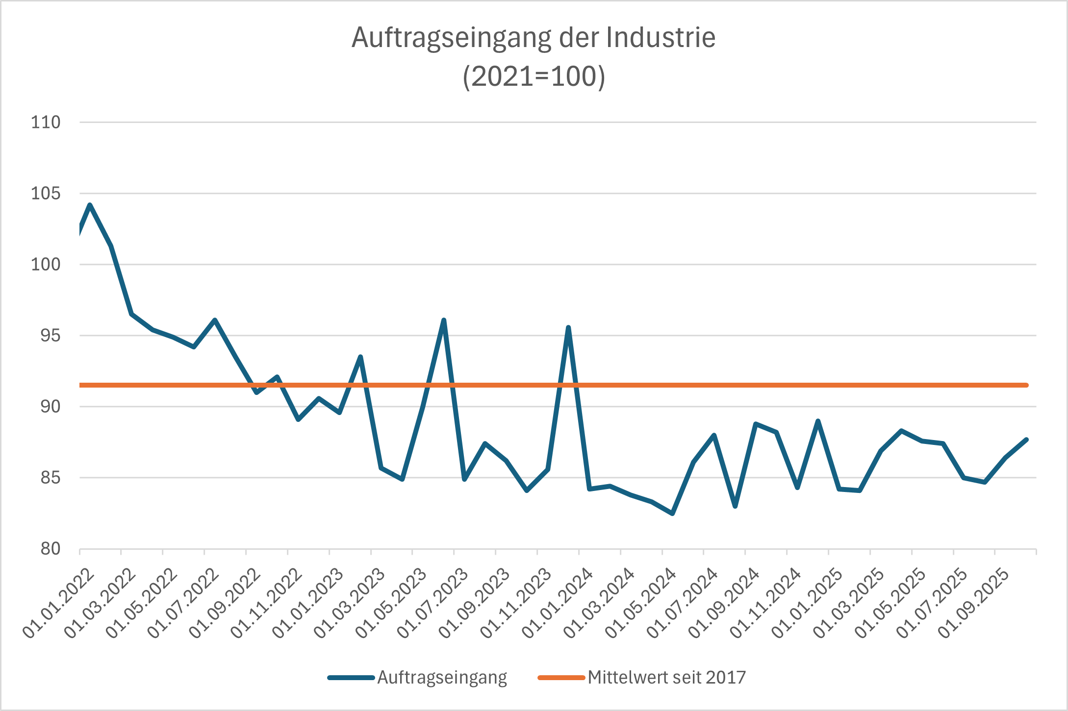 Der Auftragseingang im Verarbeitenden Gewerbe ist im Oktober 2025 gegenüber dem Vormonat um 1,5 % gestiegen. Dies teilte das Statistische Bundesamt auf Basis vorläufiger Daten mit. Erwartet wurde nur ein Anstieg um 0,3 %, nach einem Plus von revidiert 2,0 % im September. Ohne Großaufträge lag das Plus im Oktober bei 0,5 %. Im Vergleich zum Vorjahresmonat ergab sich ein kalenderbereinigter Rückgang von 0,7 %.