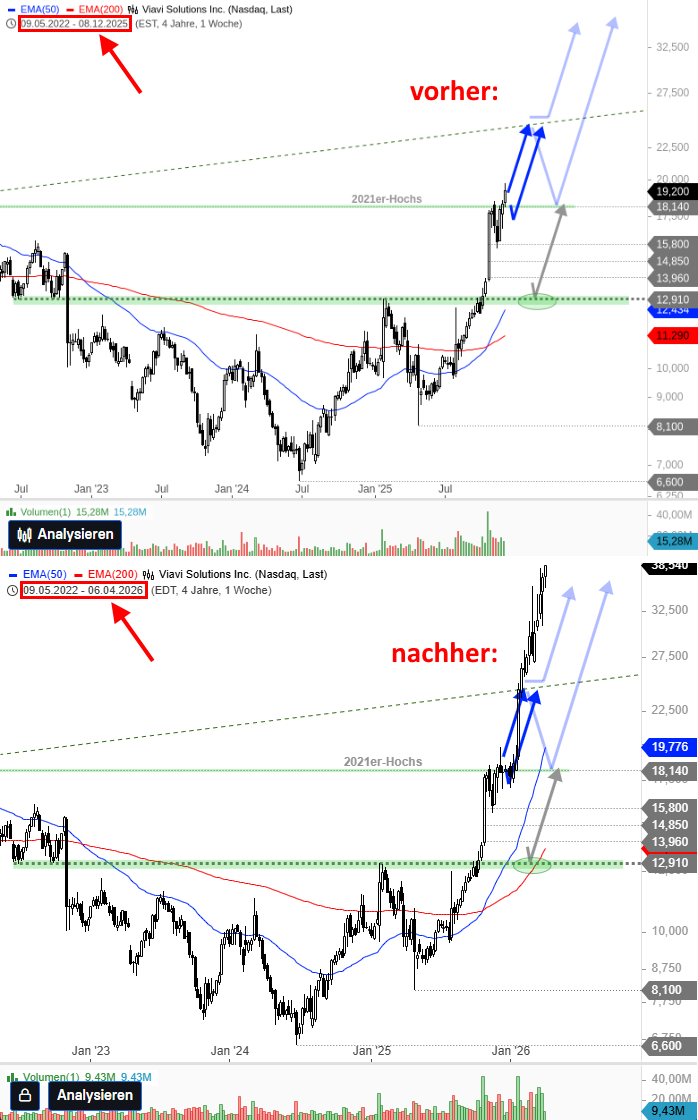 Als einer der spannendsten Momentumwerte am Markt wurde die Viavi-Solutions-Aktie im Dezember vorgestellt, der Ausbruch über das Allzeithoch war damals das Signal zur Ausweitung der Rally. Und die Bullen haben geliefert: Hochdynamisch zieht das Papier nach oben, ungeachtet der jüngsten Korrektur am Markt. Das 90%-Ziel ist erreich! Die Kolumne HOTstock3 der Woche erscheint jeden Donnerstag exklusiv für unsere Plus-Leser: