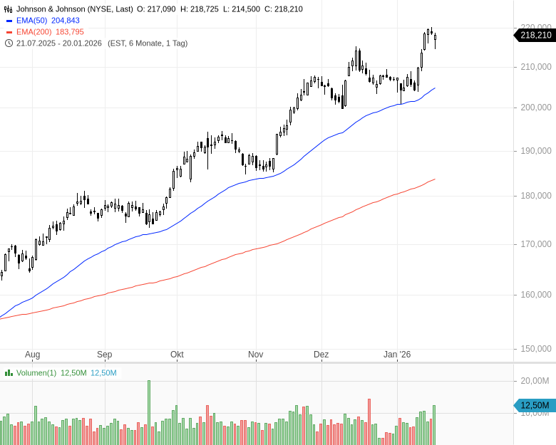 - Johnson & JohnsonKursstand: 218,210 $ (NYSE) - Zum Zeitpunkt der VeröffentlichungVerkaufenKaufen